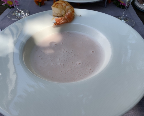 Zur Vorspeise hatten wir eine Koko-Garnelen-Suppe mit gebratenen Scampi. Die einzelnen Aromen waren sehr intensiv und geschmacklich perfekt ausbalanciert.